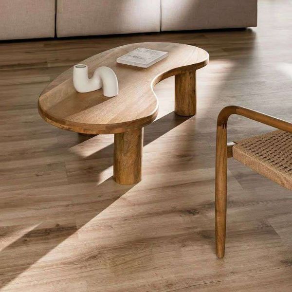 Solid Wood Kidney-Shaped Center Table – Natural Finish